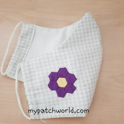 I appliqued the hexagon flower on the front piece, before I sew the mask.